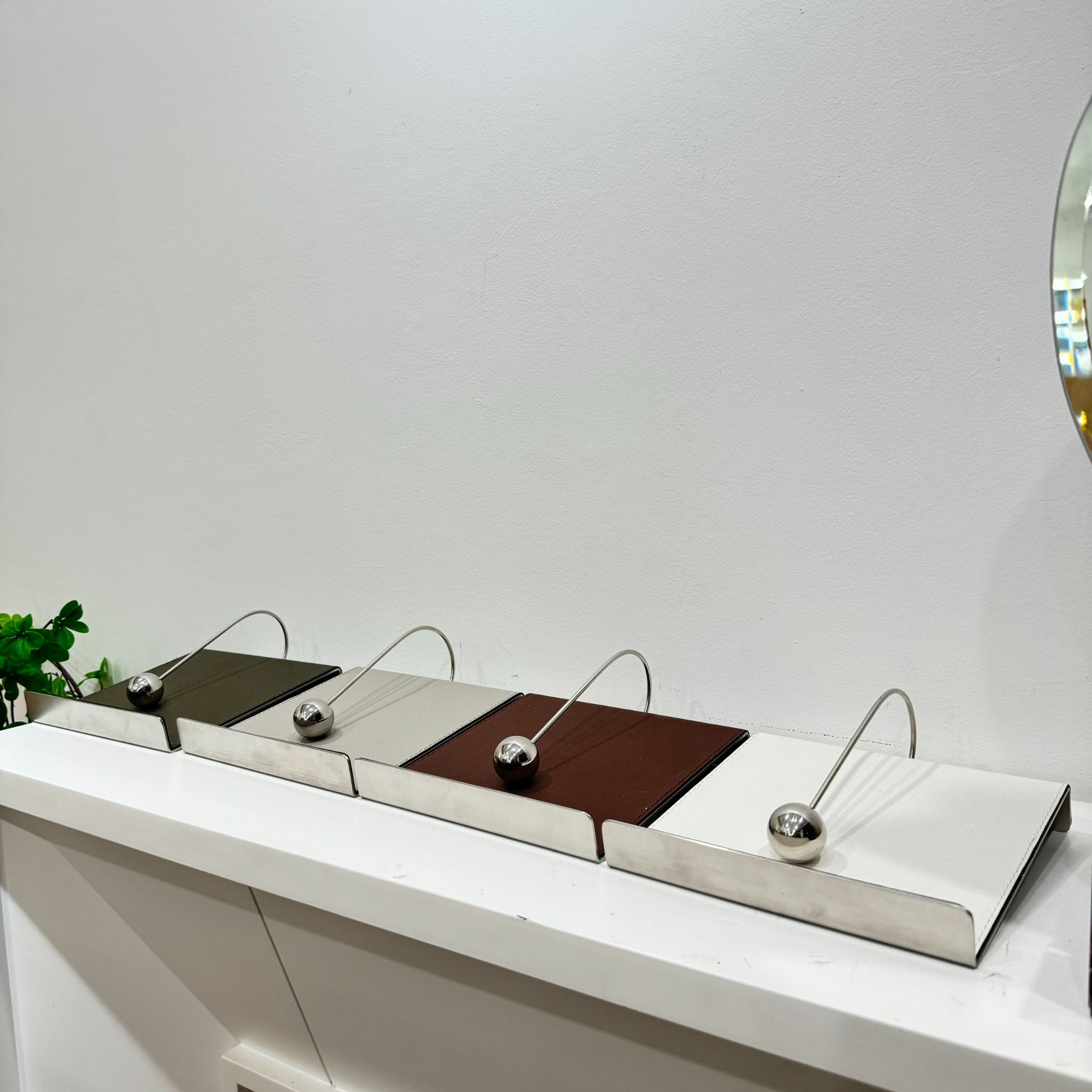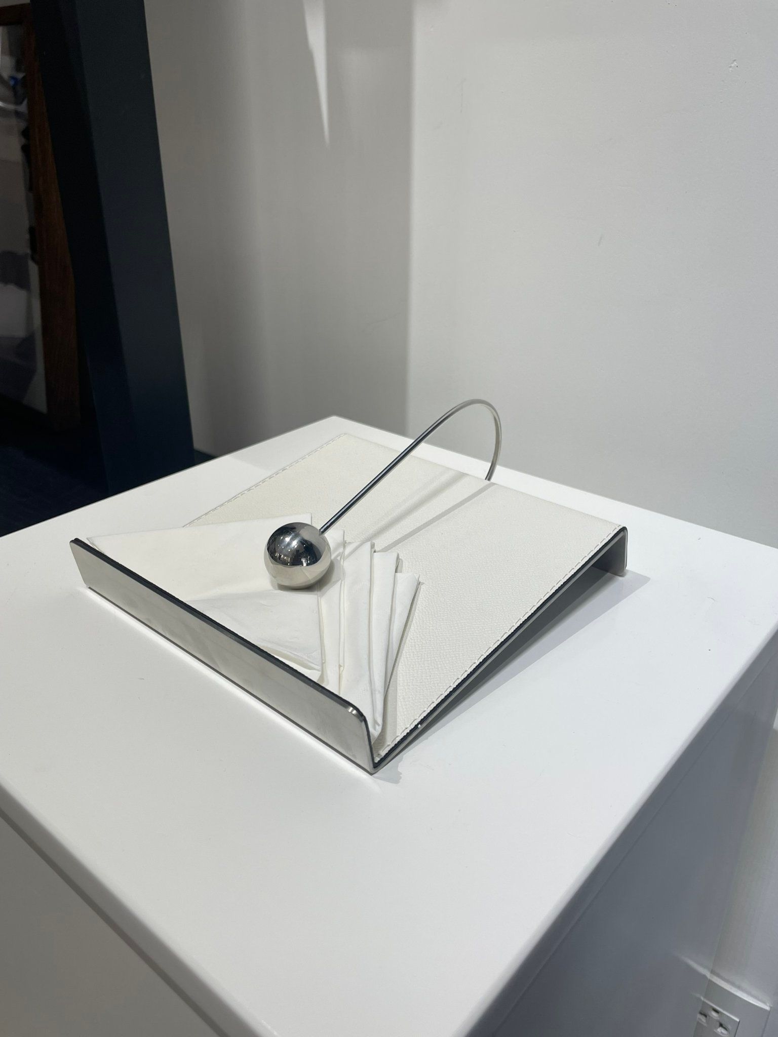 Chặn giấy thép bọc da trắng