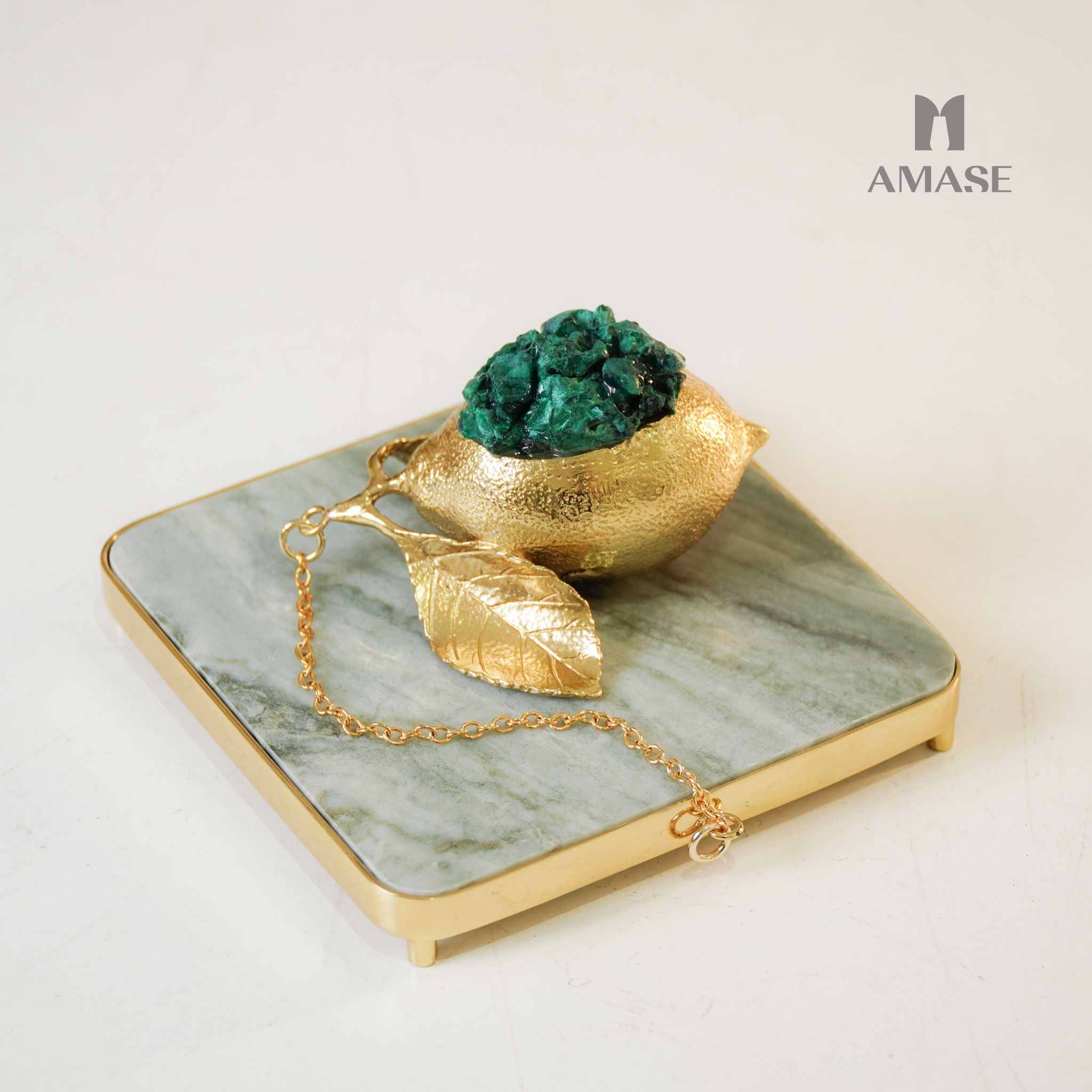 Chặn Khăn Giấy Quả Lựu Cao CấpChất liệu: Đá marble + đồng tự nhiên + đá Malachie