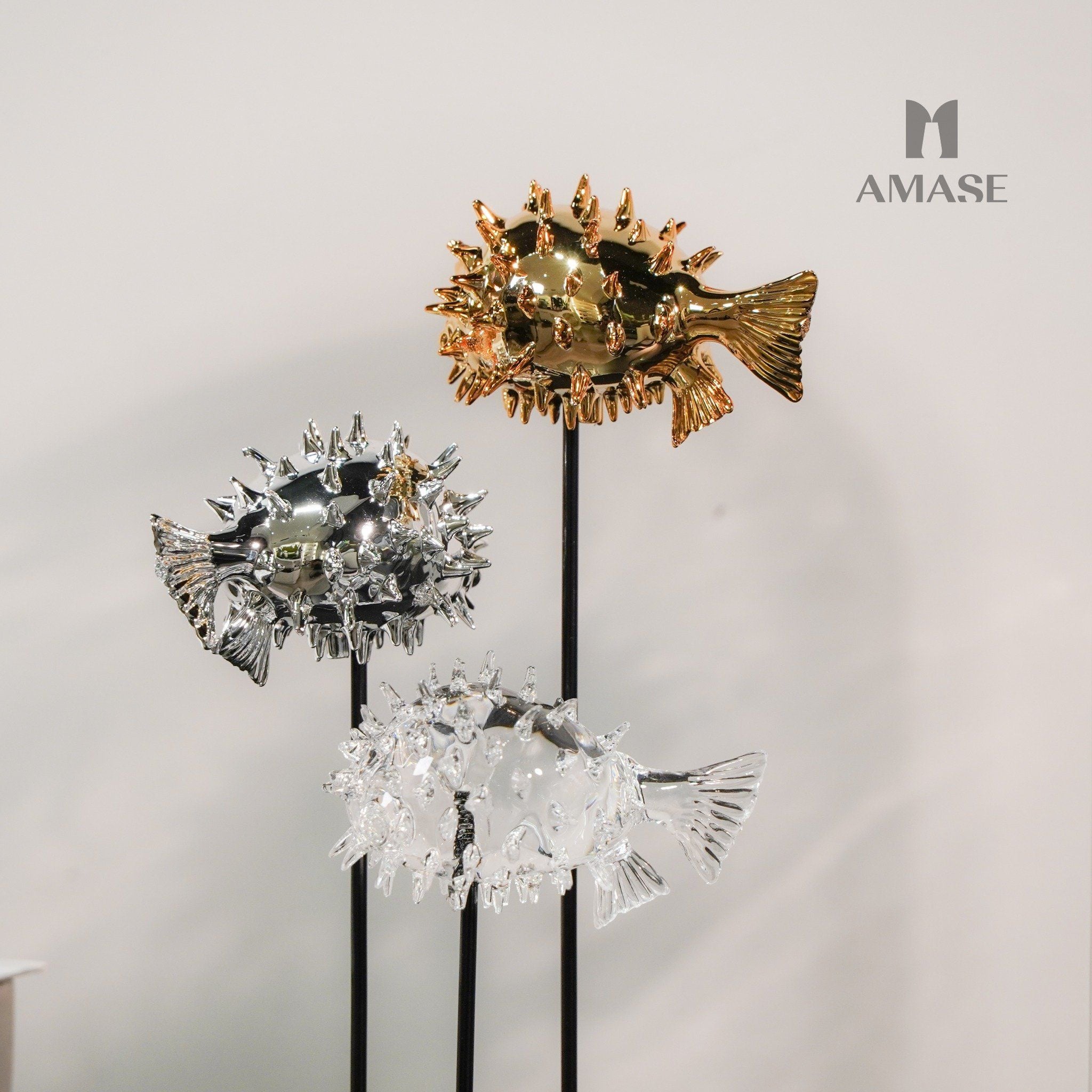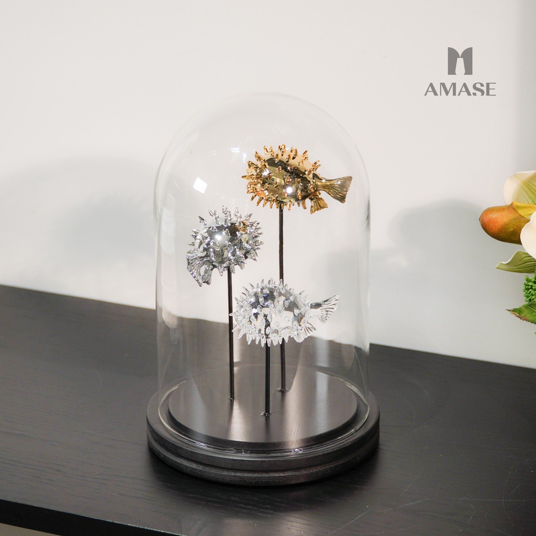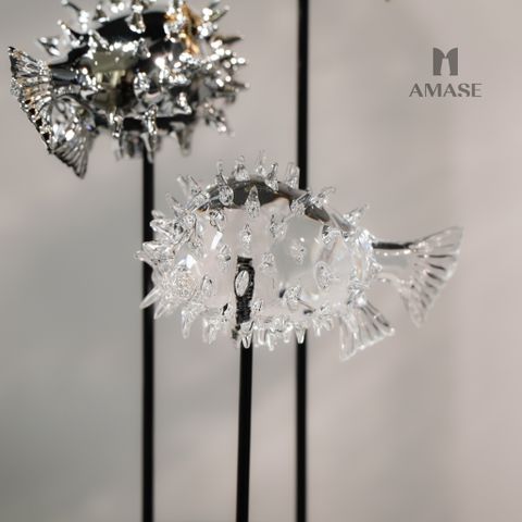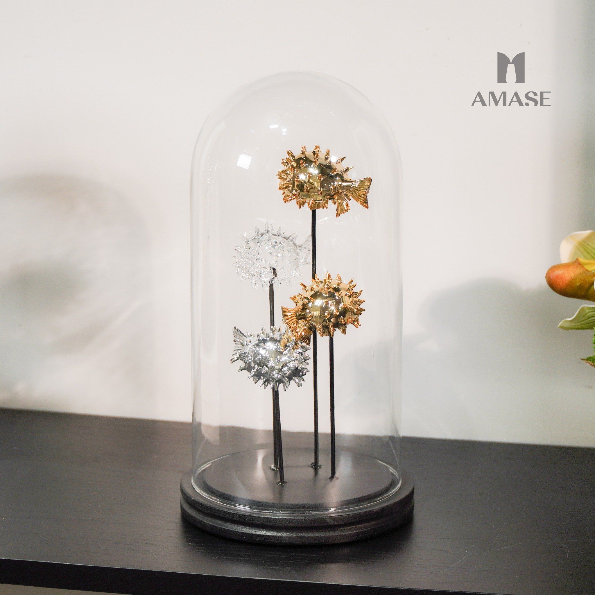 Decor Thủy Tinh Handmade Hình Cầu Sứa - Màu Xám