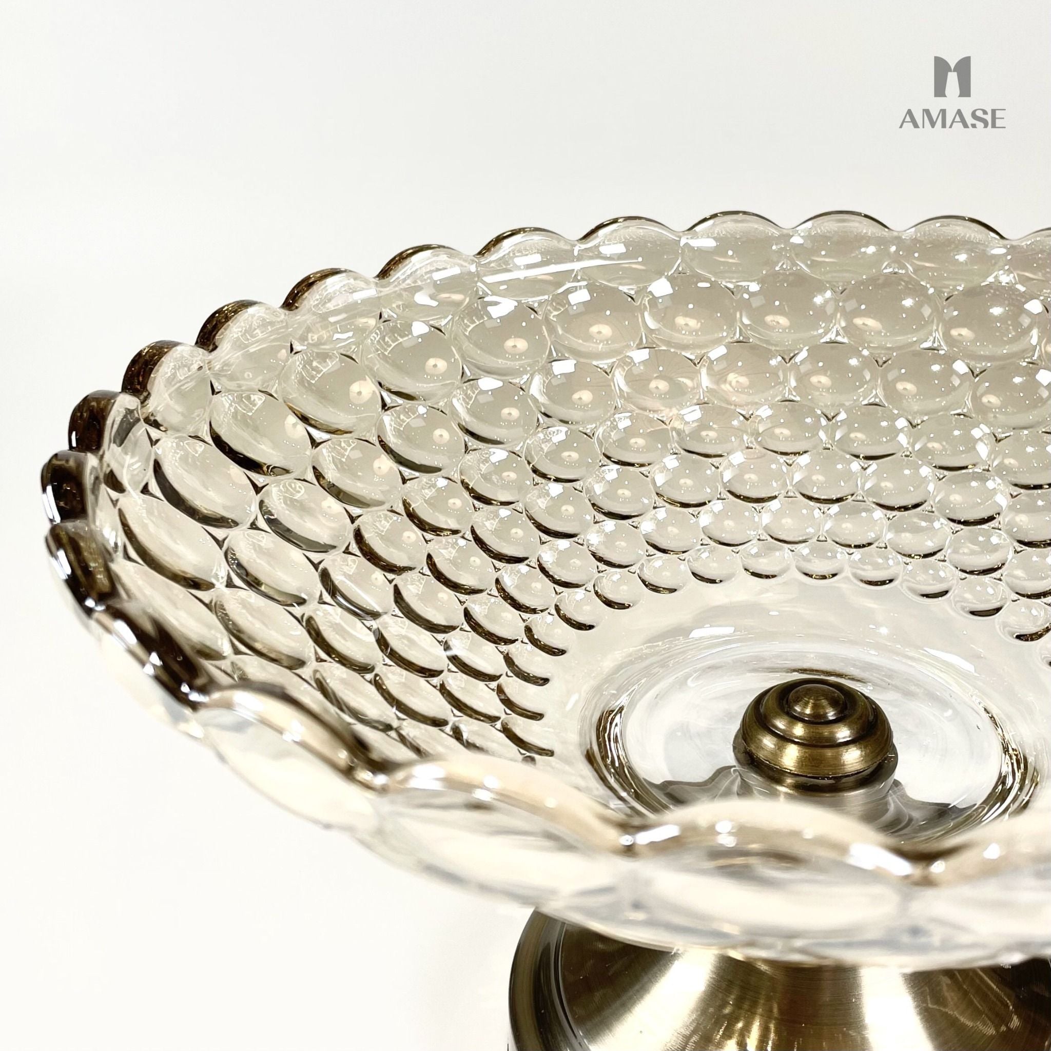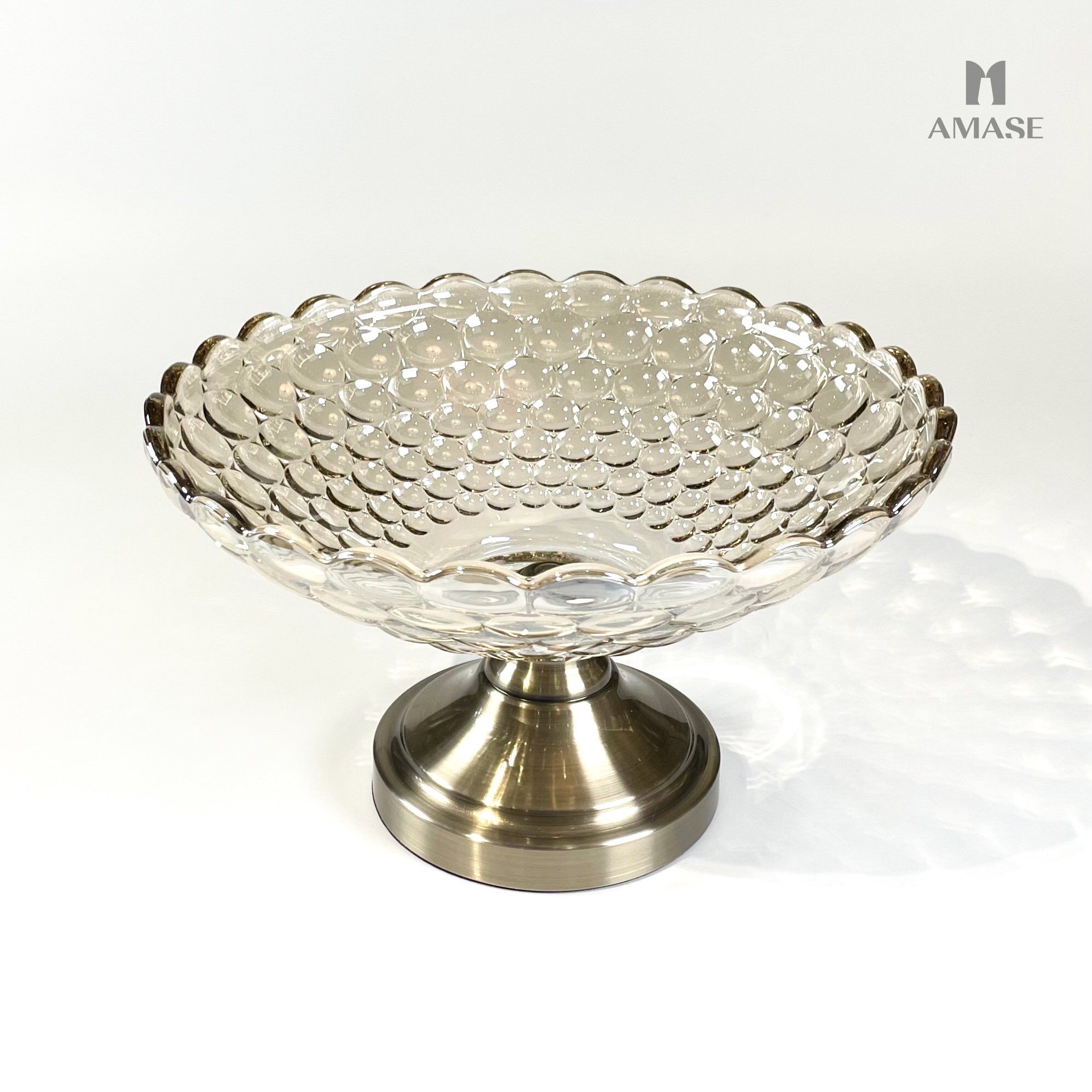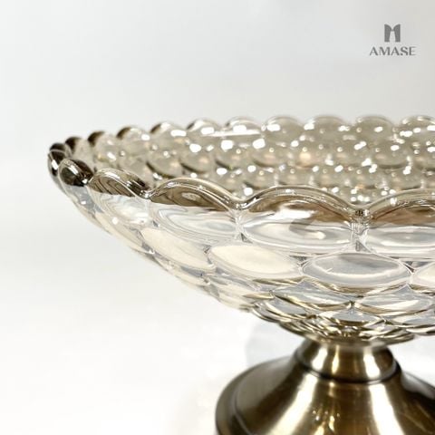 Đĩa trái cây thủy tinh phối chân kim loại