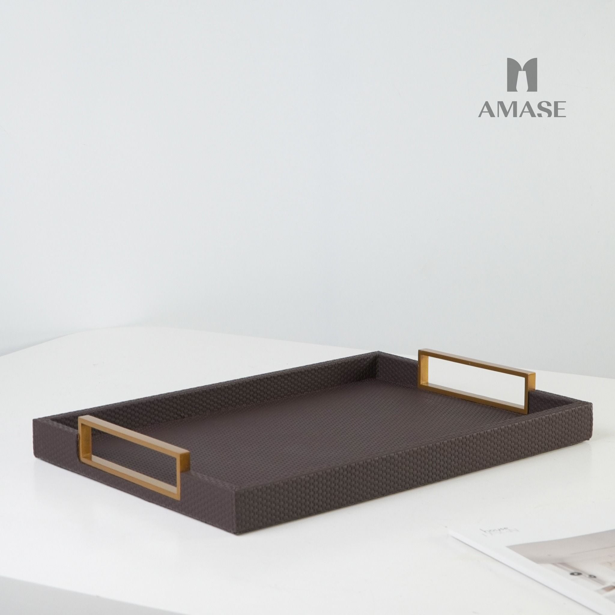 Thiết kế: Dáng khay chữ nhật sâu lòng, viền vuông vắn, tông nâu đậm hiện đại – phù hợp nhiều mục đích sử dụng.