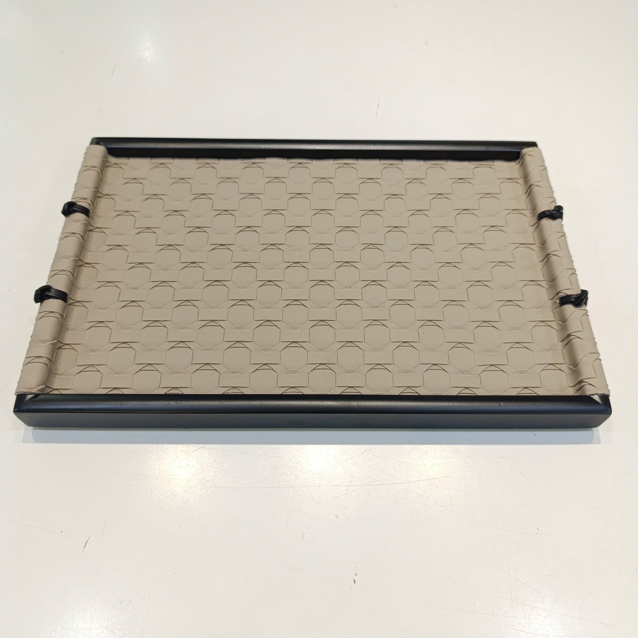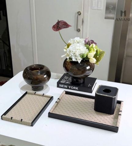 Khay Da Họa Tiết Dệt Màu Be XámChất liệu: Da dệt Kích thước: Size L: 40 x 28 x 3.5 cmSize S: 30 x 20 x 30 cm