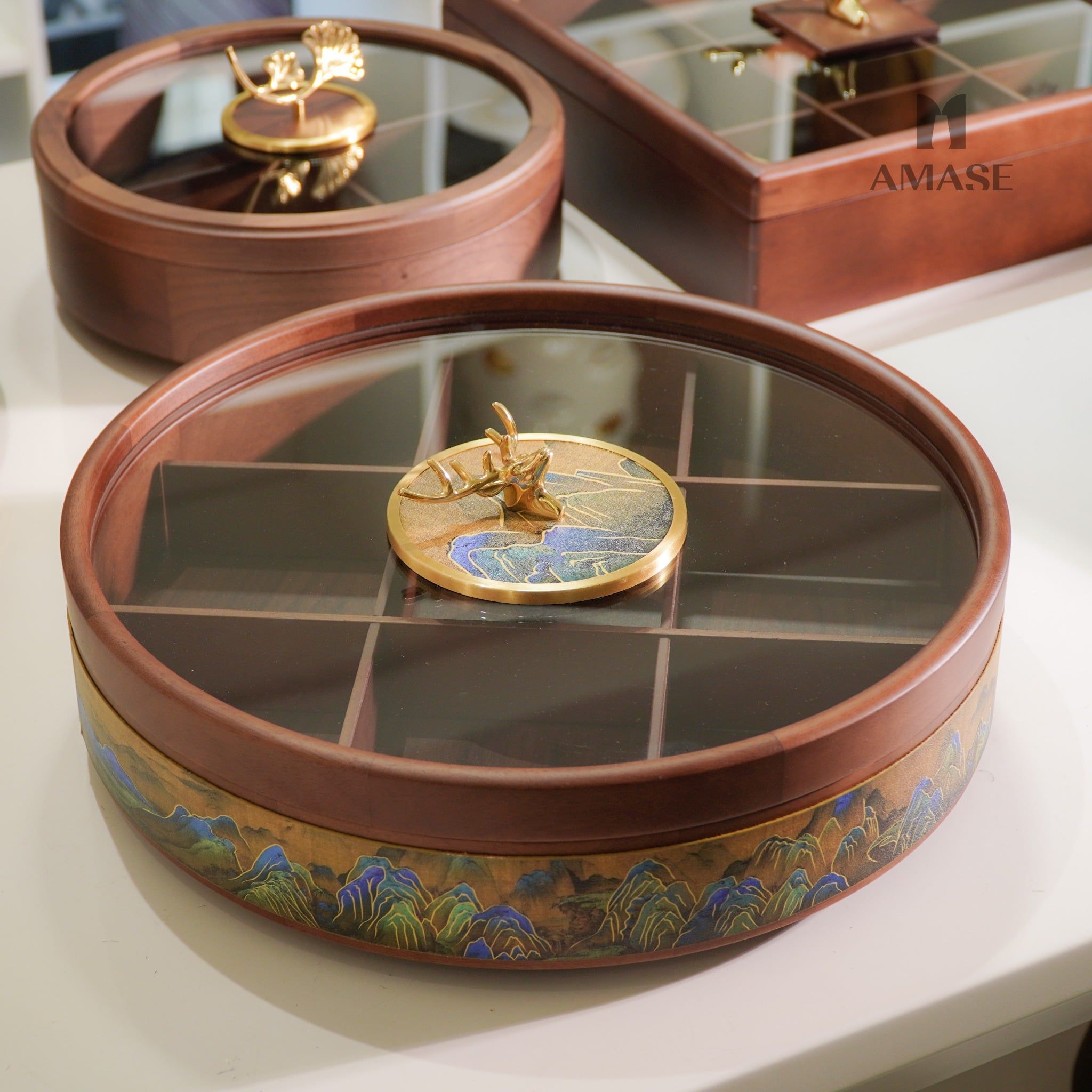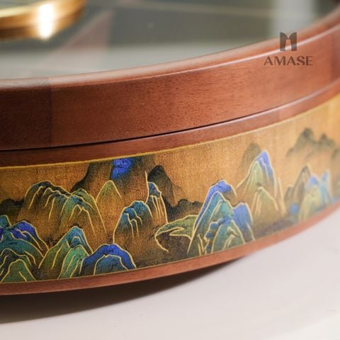 Khay Mứt Tròn Hươu Vàng Họa Tiết Núi Non