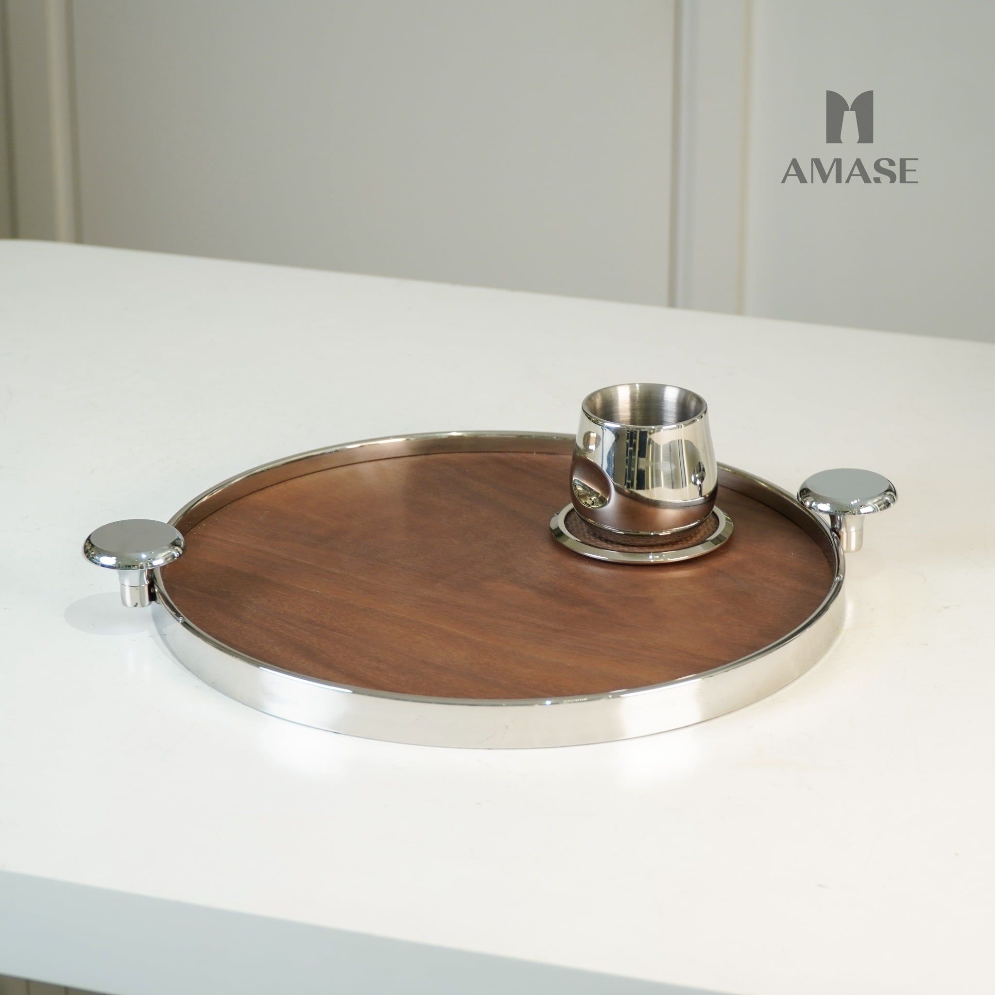 Chất liệu: Stainless steel (Inox 304) + gỗ óc chóKích thước: 41 x 35 x 5 cm