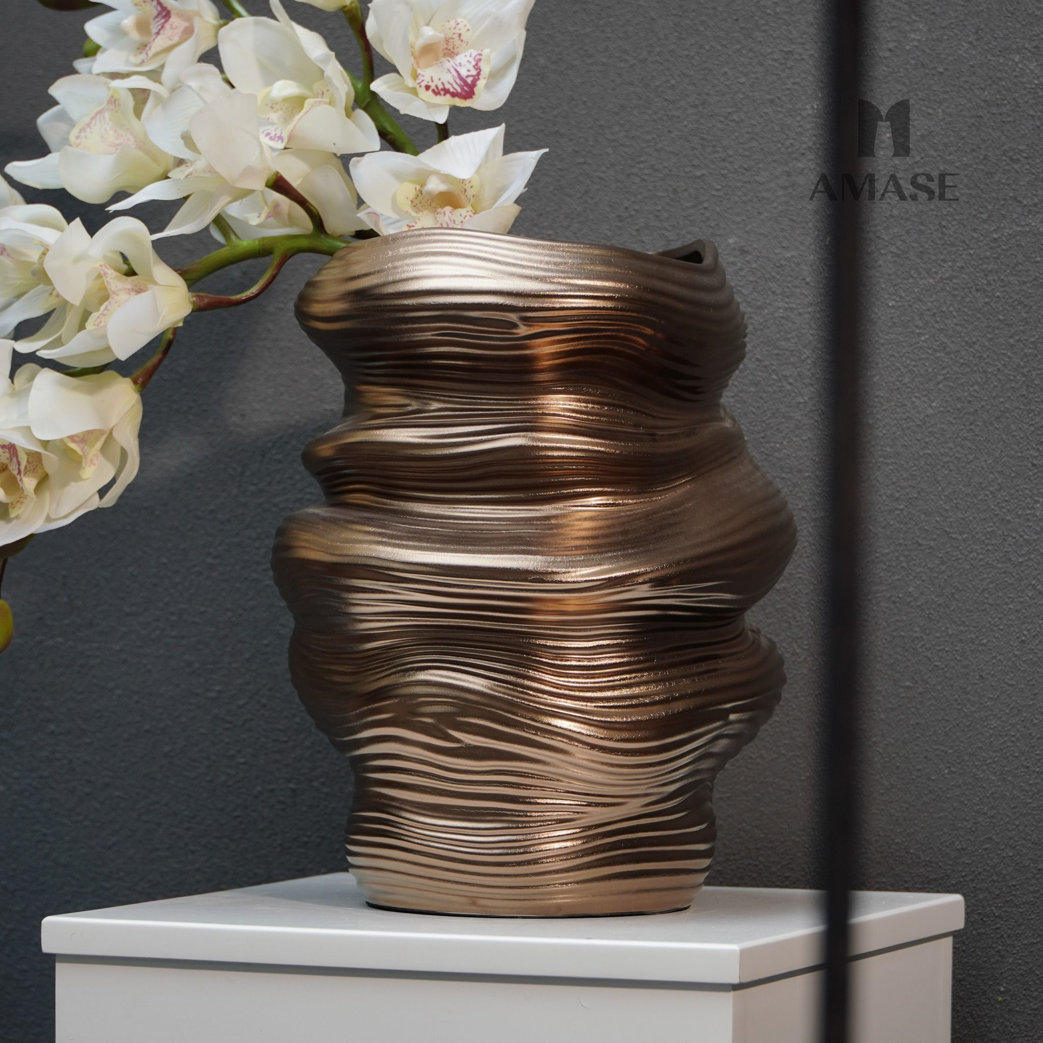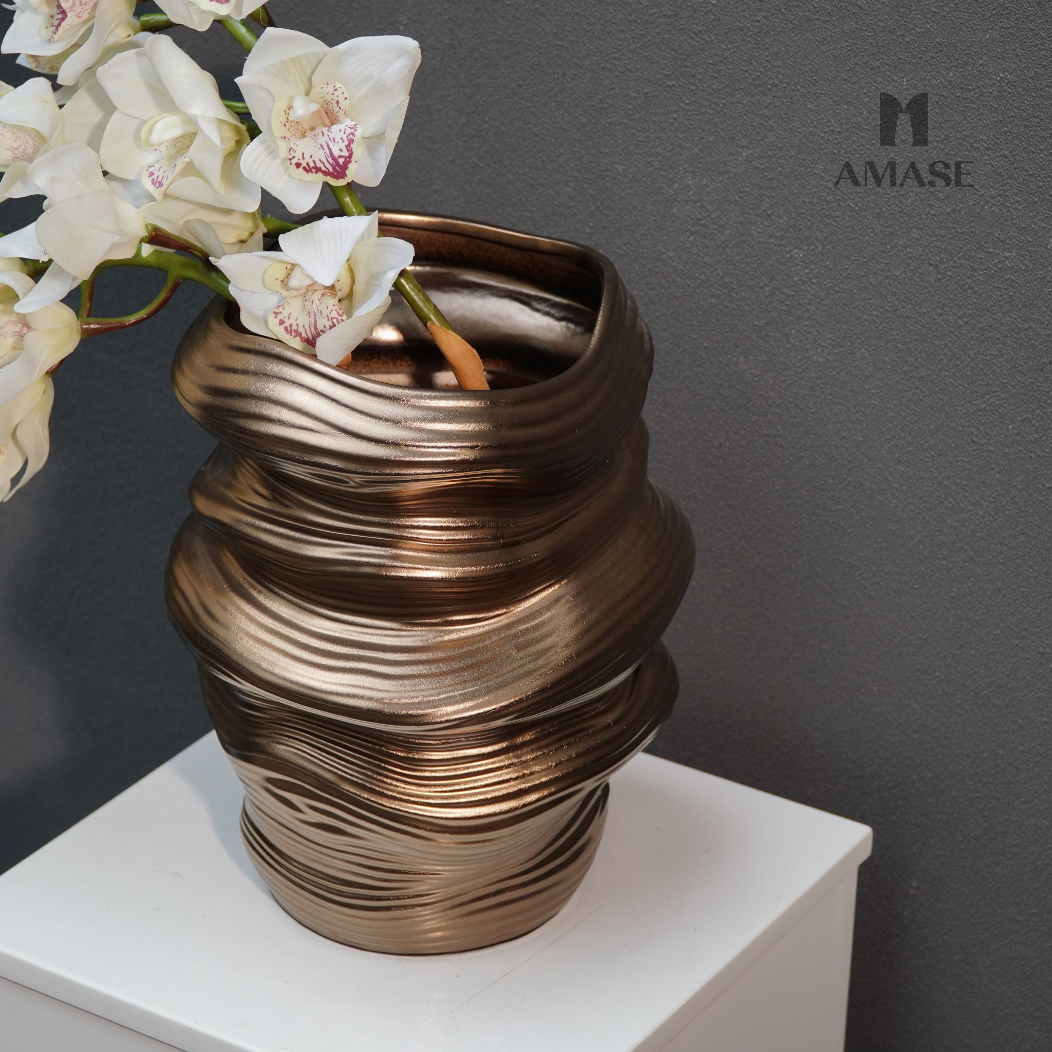 Lọ Hoa Gốm Bronze Ripple