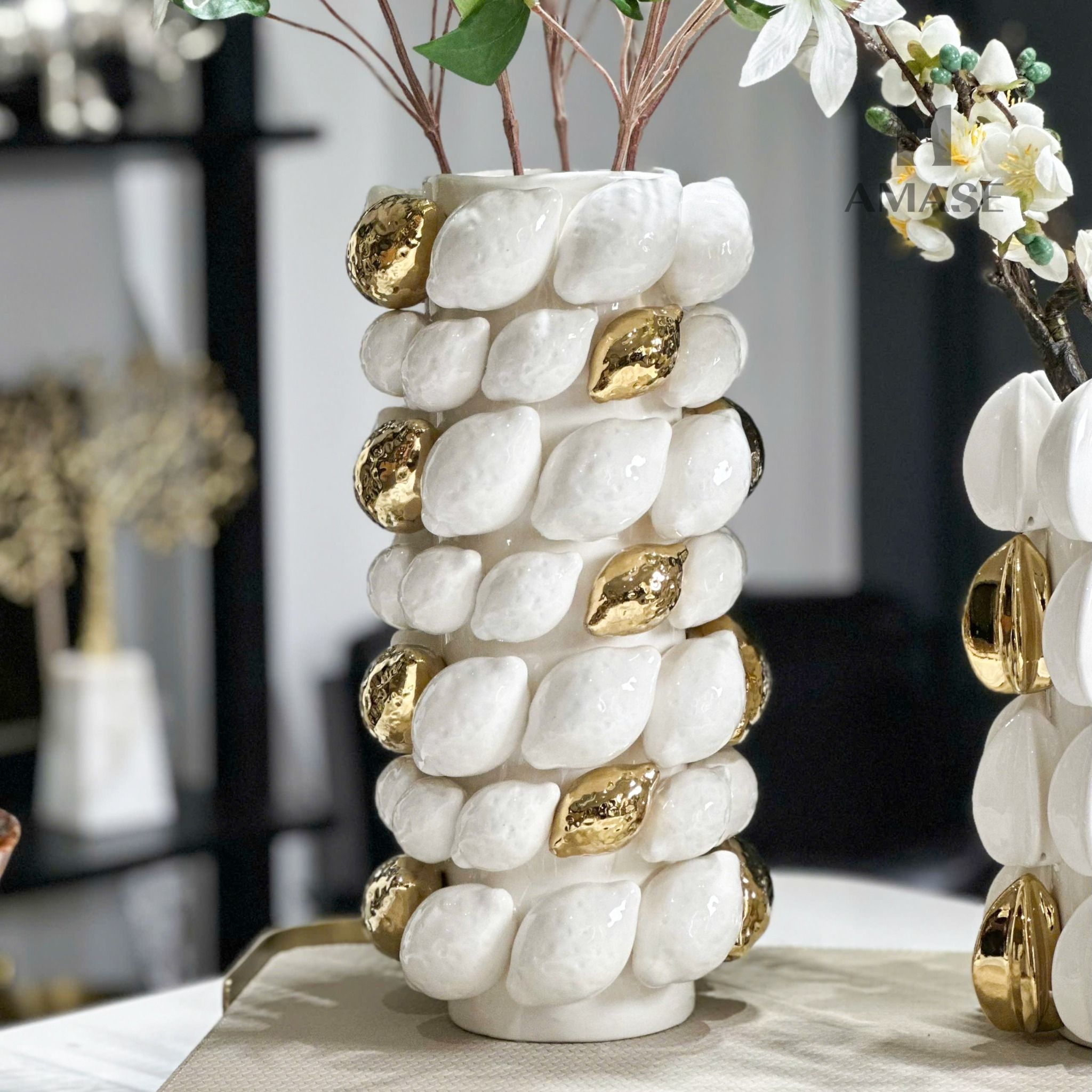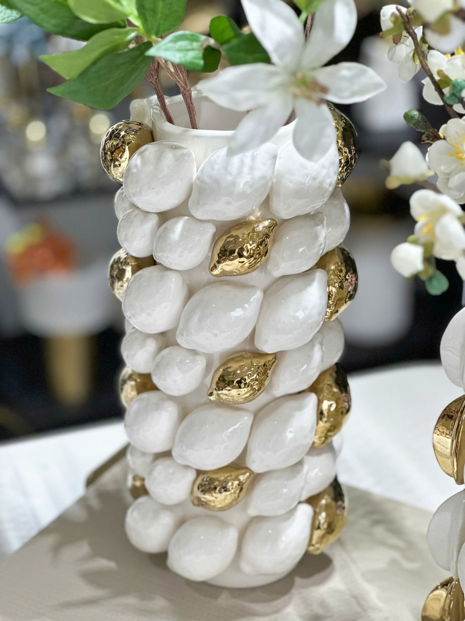 Lọ Hoa Gốm Quả Chanh Chất liệu: Ceramic mạ điệnKích thước: 16.5 x 16.5 x 33.7 cmGiá: 2,425,000