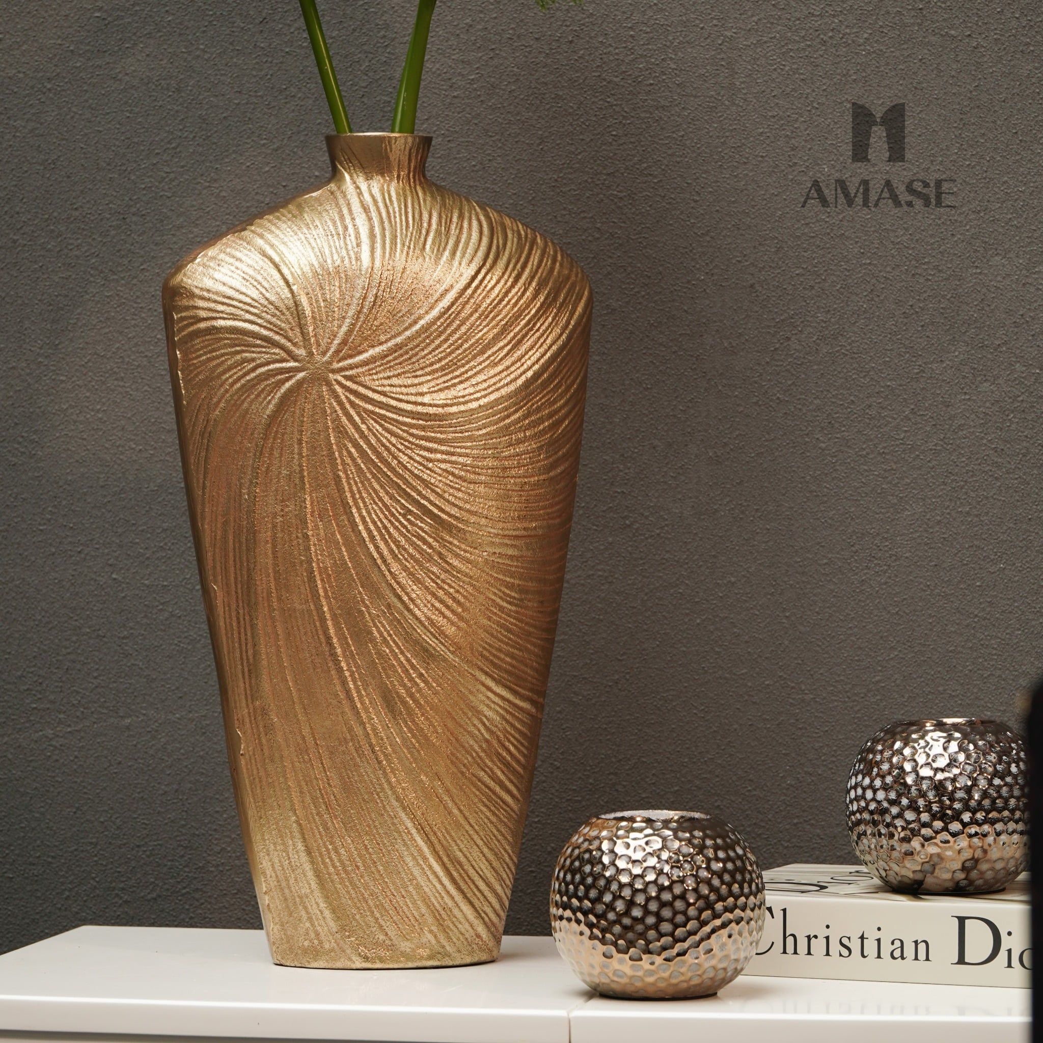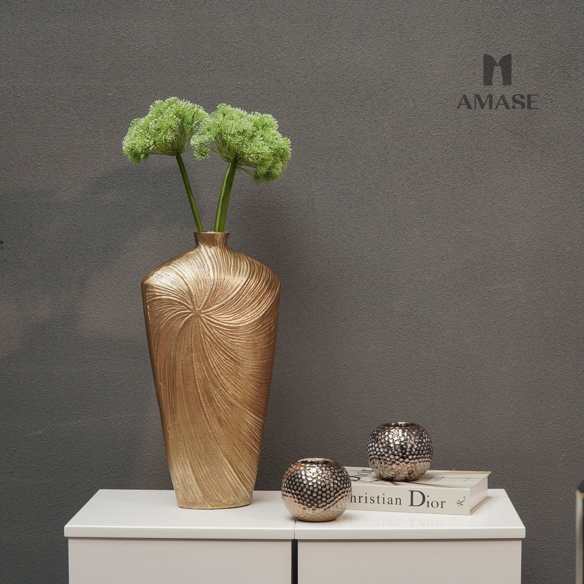 Lọ Hoa Kim Loại Golden Swirl_Country StyleChất liệu: 100% AluminumKích thước: 24.3 X 13.3 X 45.8 cmGiá: 2,755,000