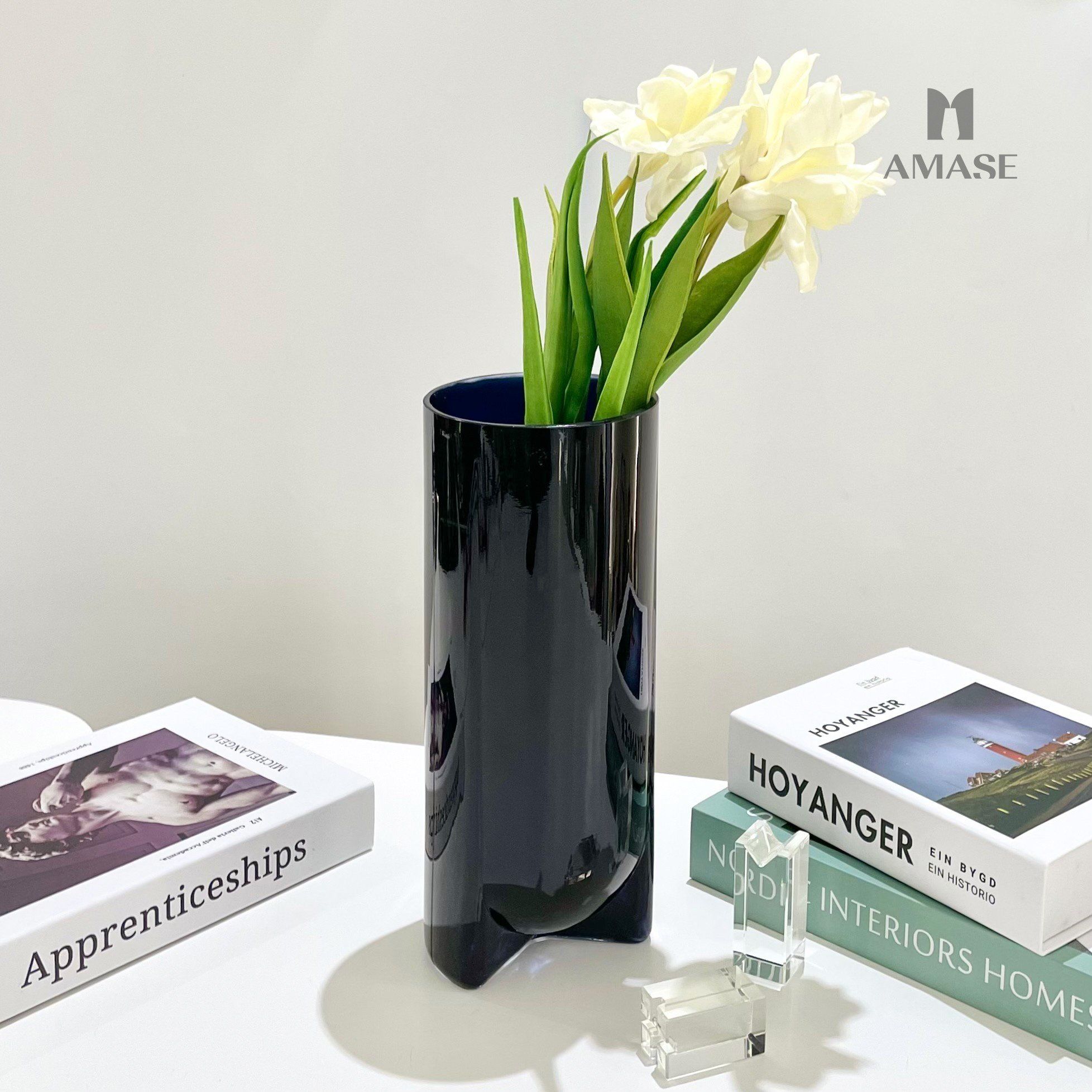 Lọ hoa thủy tinh thân trụ phối chân