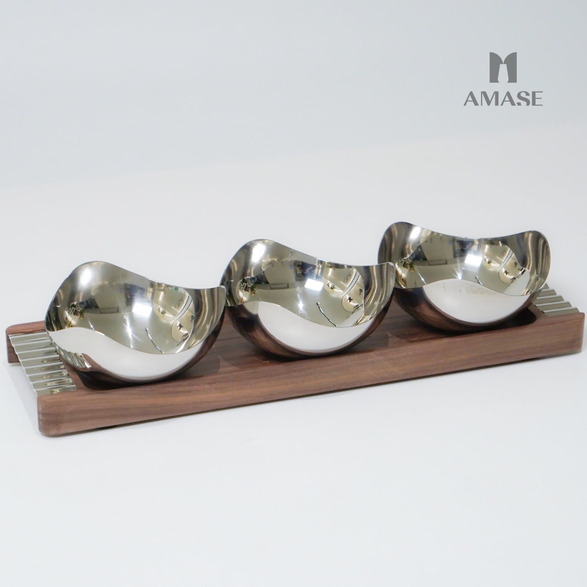 Chất liệu: Stainless steel (Inox 304) + gỗ óc chóKích thước- Khay: - Chén: