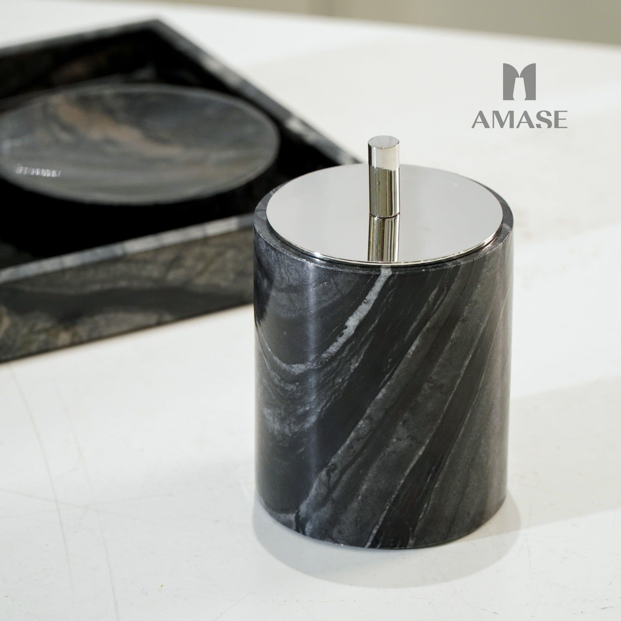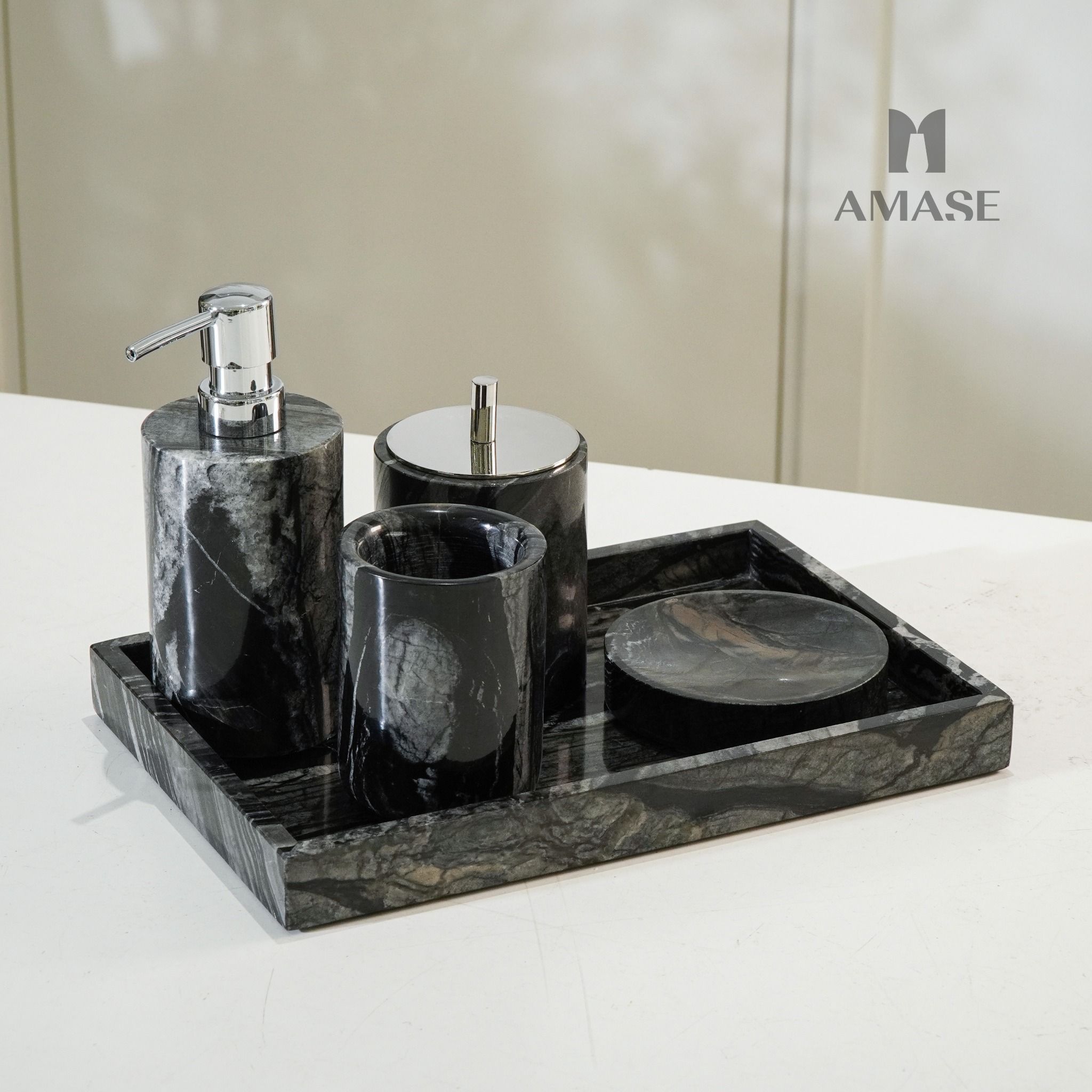Set nhà tắm đá marble đen - Dáng tròn