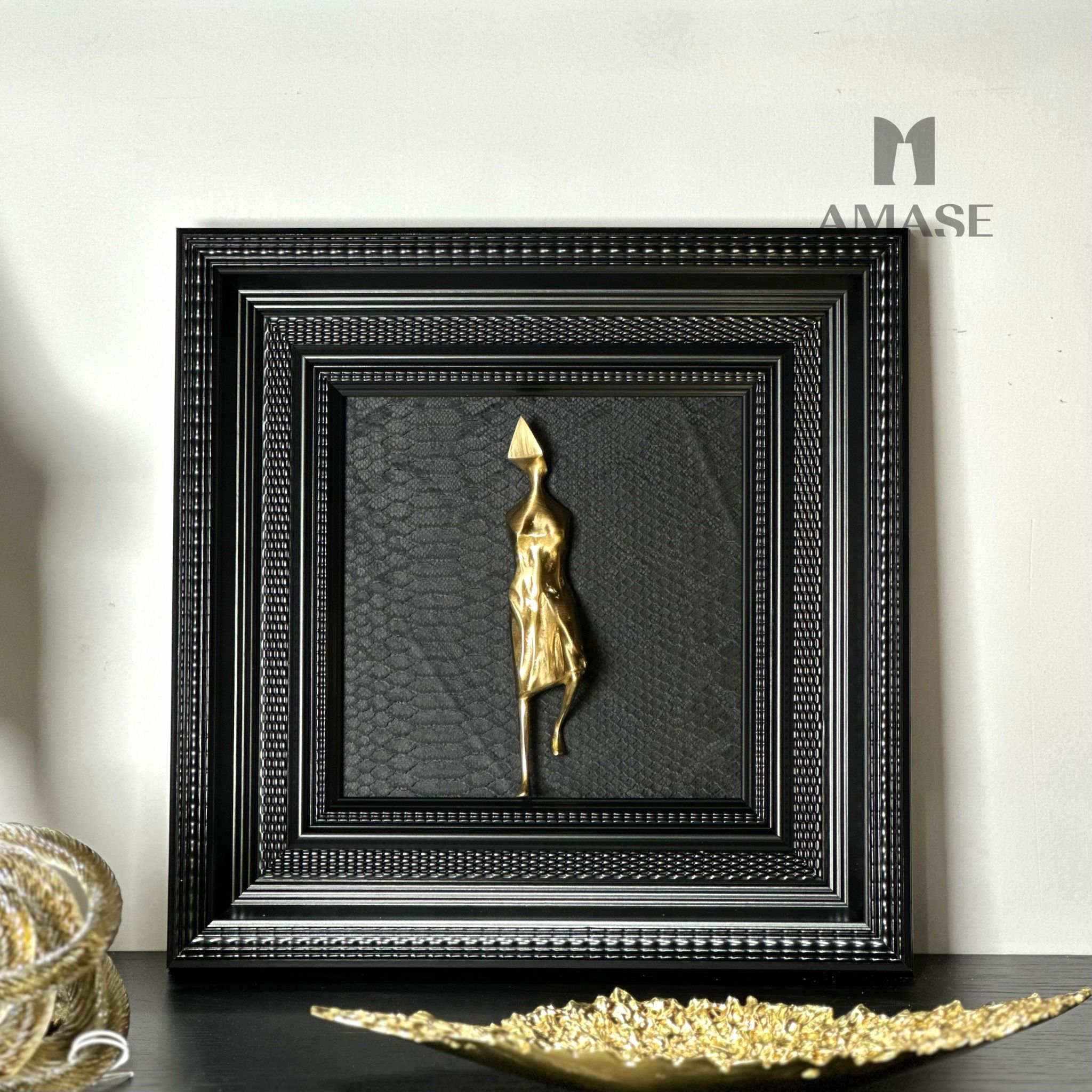 Chất liệu: Tranh trên nền da phối tượng đồng