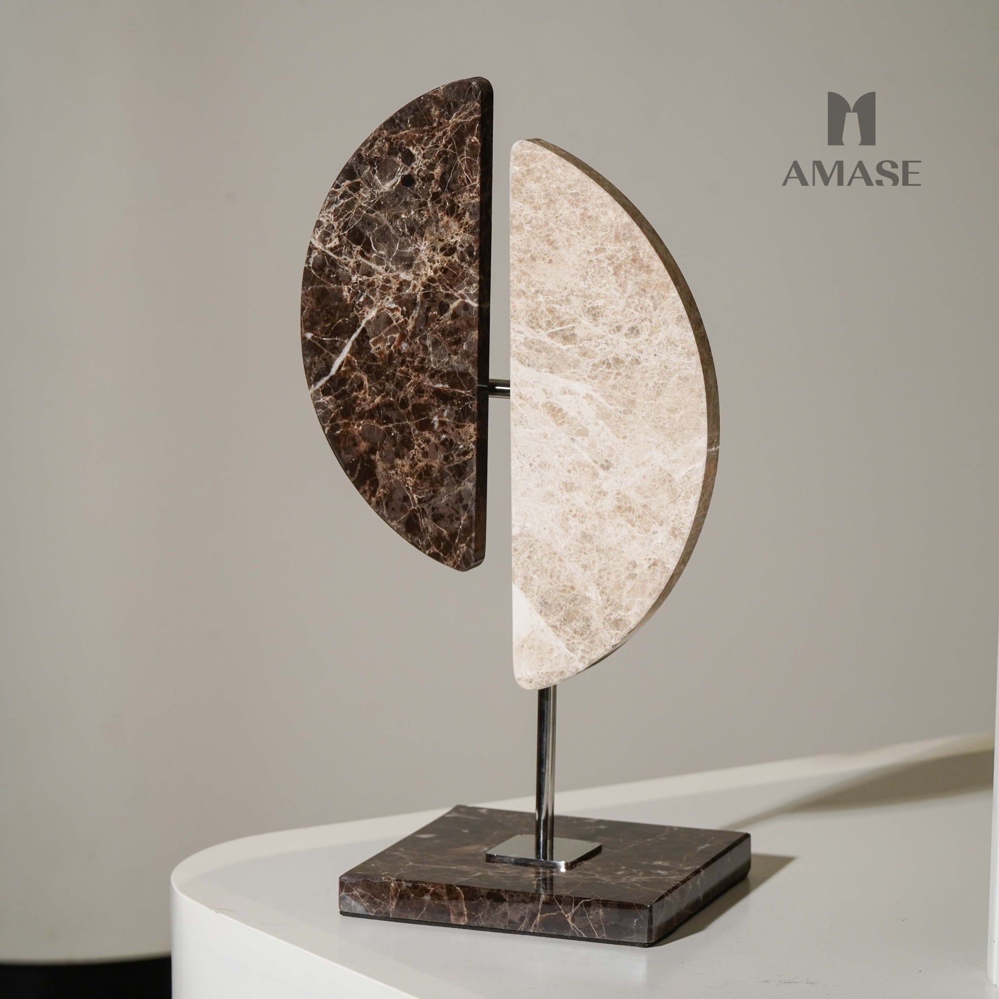 Lấy cảm hứng từ hình ảnh mặt trăng phân chia hai nửa – sáng và tối, tượng Decor Mặt Trăng là tác phẩm mang đậm chất thiền – hiện đại, đưa không gian sống trở nên thanh thoát, thẩm mỹ nhưng vẫn đầy chiều sâu và ý nghĩa